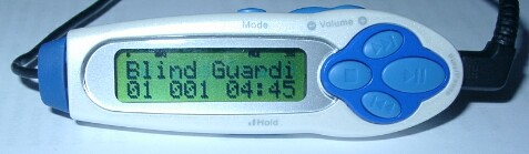 Двухстрочный дисплей с 12 знаками в строке в режиме показа ID3-тэгов работает по принципу бегущей строки. На самом верху дисплея расположились крошечные значки, отображающие режим работы плеера, тип файлов и уровень заряда батарей. К моему большому сожалению, дисплей не имеет подсветки, так что использовать его в темное время суток достаточно проблематично. Иногда случалось, что при подключении к работающему плееру пульт ДУ, что называется, "зависал". Это выражалось в том, что у экрана зажигались все элементы. Лечится сие достаточно просто отключением-подключением пульта к плееру.