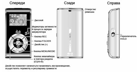 Как видим, скудным комплект назвать нельзя, хотя ничего неординарного в принципе нет. Отметить можно лишь наушники, качество которых несколько выше среднего уровня (если рассматривать именно комплектные модели), но они немного неудобно сидят в ухе. Очень порадовал чехольчик, неплохо вписывающийся в общий дизайн плеера и защищающий его от возможных царапин. Его также можно прицепить к поясу, либо закрепить на руке или запястье при помощи специального ремешка, вставляющегося в чехол сзади.