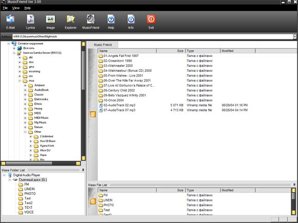 Долгое время открытый формат OGG Vorbis игнорировался большинством производителей цифровых плееров, что иногда мешало, так как файлы, закодированные таким образом, приходилось специально для плеера пережимать в MP3 или WMA с потерей в качестве, но все в мире меняется и поддержка OGG похоже становится «правилом хорошего тона» среди разработчиков. В NEXX решили также не отставать от моды и реализовали поддержку OGG в новом плеере, причем на очень хорошем уровне: все тестовые файлы NF-510 проиграл на отлично. То же самое можно сказать и о MP3, а вот с WMA дело на момент тестирования обстояло гораздо хуже, ибо плеер отказывался открывать файлы, закодированные в этом формате с битрейтом 192 Кбит/с. и выше (при частоте дискретизации 44 кГц) или 128 Кбит/с. и выше (при частоте 48кГц). Впрочем, по информации от производителя эти проблемы были исправлены в последних прошивках. В них же появилась и поддержка тэгов, которая изначально отсутствовала (плеер работал только с именами файлов). К сожалению, проверить качество ее реализации мы уже не успели, поскольку плеер вернулся обратно.
