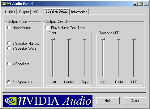 В этой программе можно выбрать режим работы спикеров, API реверберации, пресет окружения, а затем запустить источник звука по какой-нибудь траектории. Таким образом было выяснено, что у nForce позиционирование источников звука — отличное, реверберация — довольно качественная. Поддерживается также ясно слышимое позиционирование по вертикальной оси (верх-низ). Всё сделано на уровне самых современных звуковых карт. Правда, отсутствует заявленная в спецификации поддержка фирменных расширений Sensaura: MacroFX, ZoomFX. Либо данная программа от Sensaura не смогла их распознать, что также нельзя исключать. Однако нам неизвестны какие-то другие программы, которые бы рапортовали о поддержке этих технологий в явном виде.