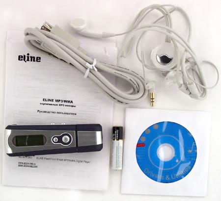 Последний по алфавиту и времени появления в Москве плеер от Eline основан на куда более ранней модели, чем остальные два принявших участие в тестировании устройства. Первый раз, увидев его на презентации, я обрадовался как при встрече со старым знакомым. Да и немудрено: выглядит он точь-в-точь, как TGE MP304, которым я некоторое время пользовался. А с учетом того, что с предыдущей парой я к тому моменту успел плотно пообщаться и выяснить, что изменения дизайна разве что сделали плееры немного красивее, но отрицательно сказались на эргономике, радость моя при встрече с EL-MPF302 еще более усилилась. Здесь и батарейный отсек открывается независимо от всего, и кнопка A-B есть, но под руку, когда не нужно, не лезет словом, этот вариант исполнения все-таки нравится мне больше всего. Ну а комплект поставки у всех троих абсолютно не изменился по сравнению с базовой моделью (USB-удлинитель, наушники совмещенные со шнурком-ошейником, инструкция, батарейка да CD с драйверами и ПО), так что, думаю, одной фотографии на всех хватит.