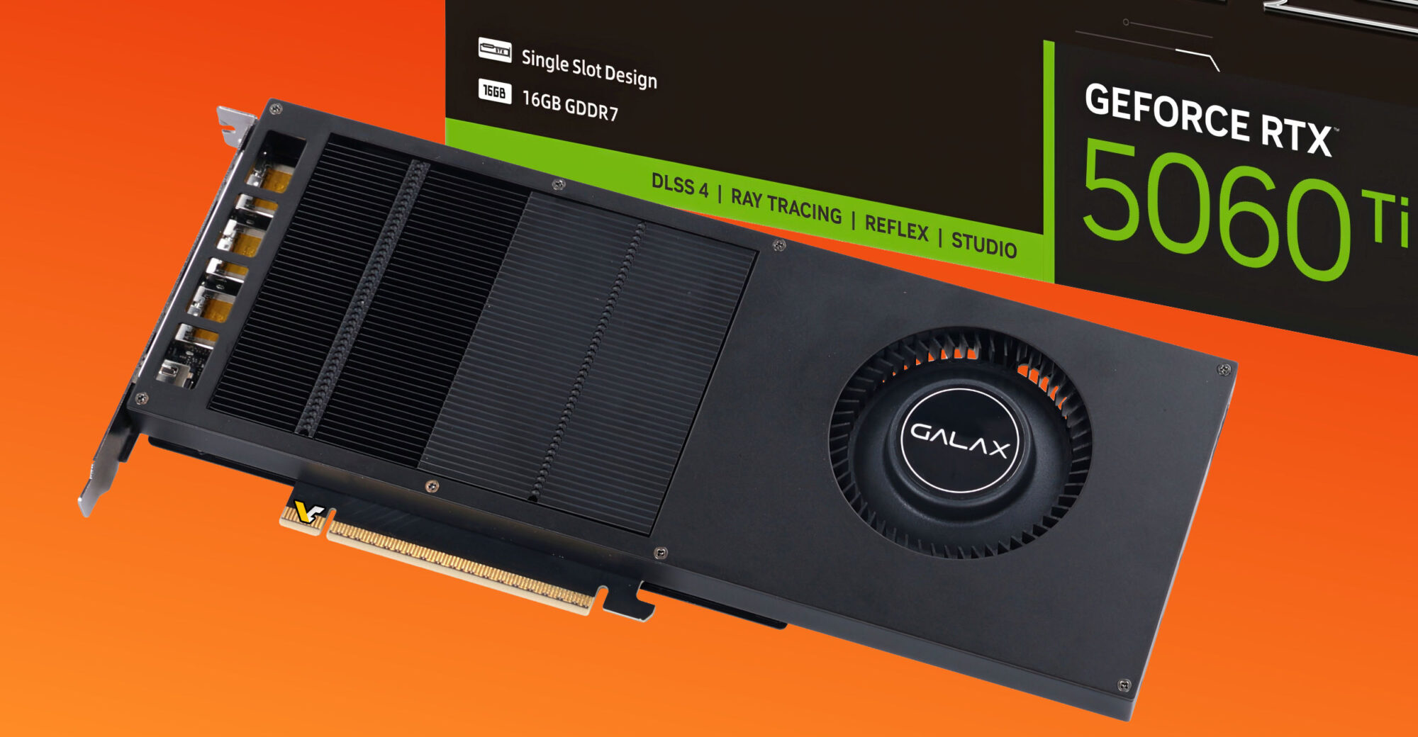 Galax выбрала версию GeForce RTX 5060 Ti с 16 ГБ памяти — судя по этому, а также по исполнению, эта вполне себе игровая видеокарта создана для задач тренировки ИИ: тонкий корпус позволяет установить в корпусе несколько ускорителей, получив относительно дешево большой объем памяти. Впрочем, использовать ее для игр тоже вполне возможно.