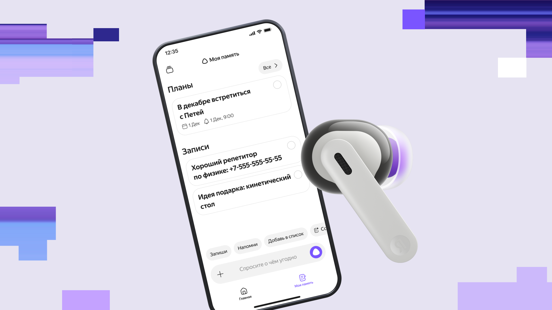 Как рассказали в пресс-службе, с его помощью пользователи смогут на ходу, не доставая смартфон, наговаривать «Алисе AI» мысли и идеи, которые важно не забыть, — «Моя память» преобразует их в структурированные списки, заметки и напоминания. К ним можно будет в любой момент вернуться в чате с Алисой AI или через голосовой интерфейс носимого устройства.