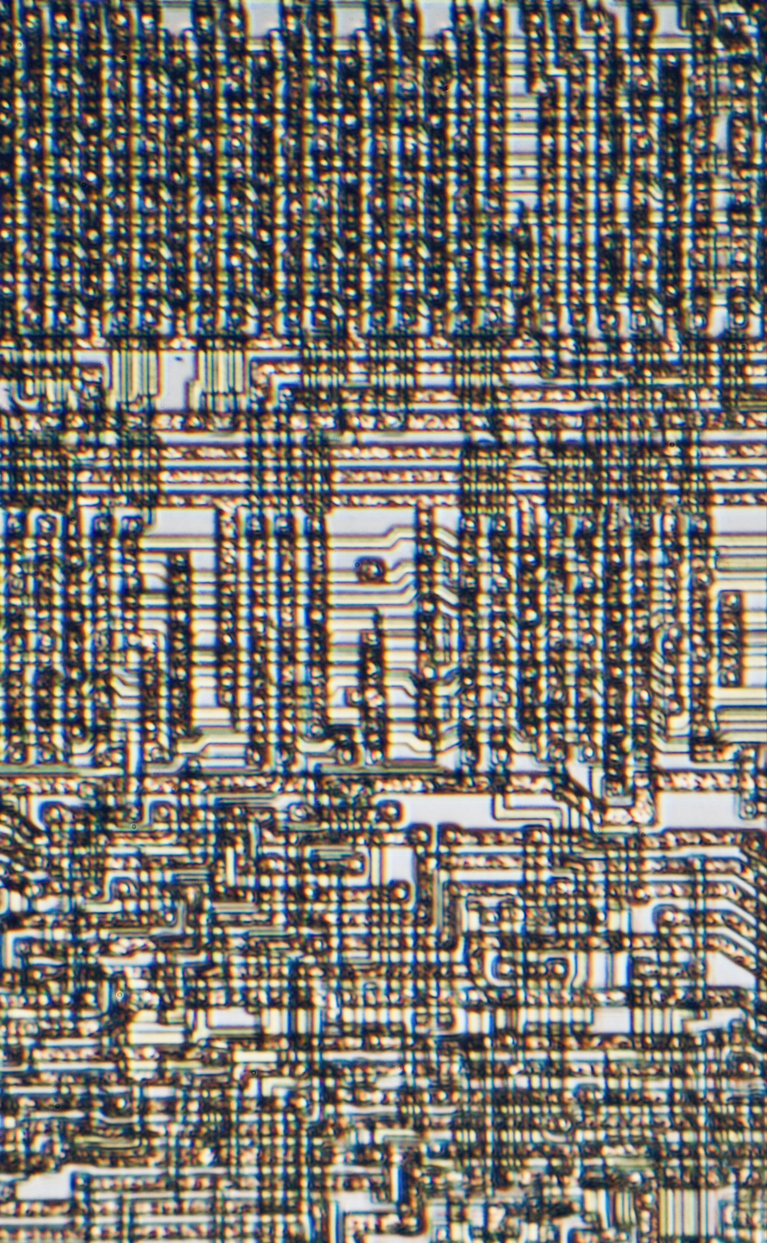 Производился он по нормам 10 мкм и содержал лишь 2300 транзисторов, так что их легко можно рассмотреть при не самом большом приближении.
