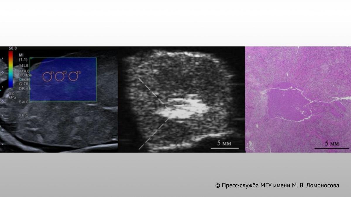 В МГУ впервые продемонстрировали метод, который позволяет механически разрушать агрессивную опухоль лейомиосаркомы человека с помощью ультразвука. В ходе гистотрипсии на тканях под контролем УЗИ ткань превращалась в бесструктурную жидкость. Результаты показали, что метод может стать неинвазивной альтернативой хирургии и лекарствам при лечении сарком.