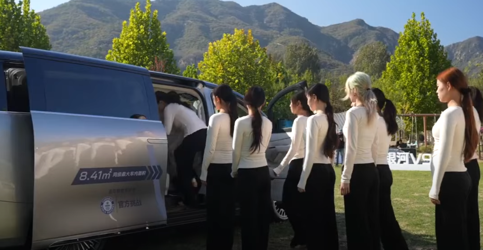 Минивэн Geely Galaxy V900 с силовой установкой EREV установил мировой рекорд Гиннесса, вместив в салон 42 человека. По данным автопроизводителя, этот минивэн может похвастаться лучшей в своем классе площадью салона — 8,41 кв. м — и коэффициентом использования внутреннего пространства 91,8%.