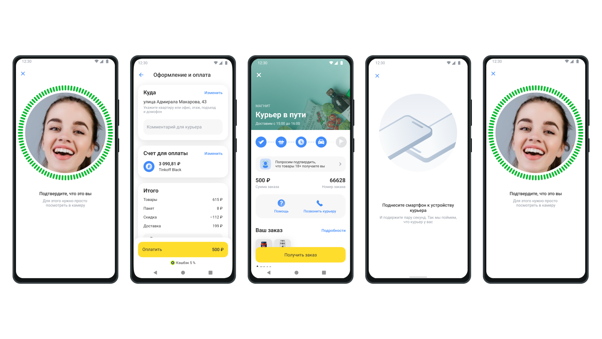 - посмотреть в камеру телефона для подтверждения личности и оформления заказа;