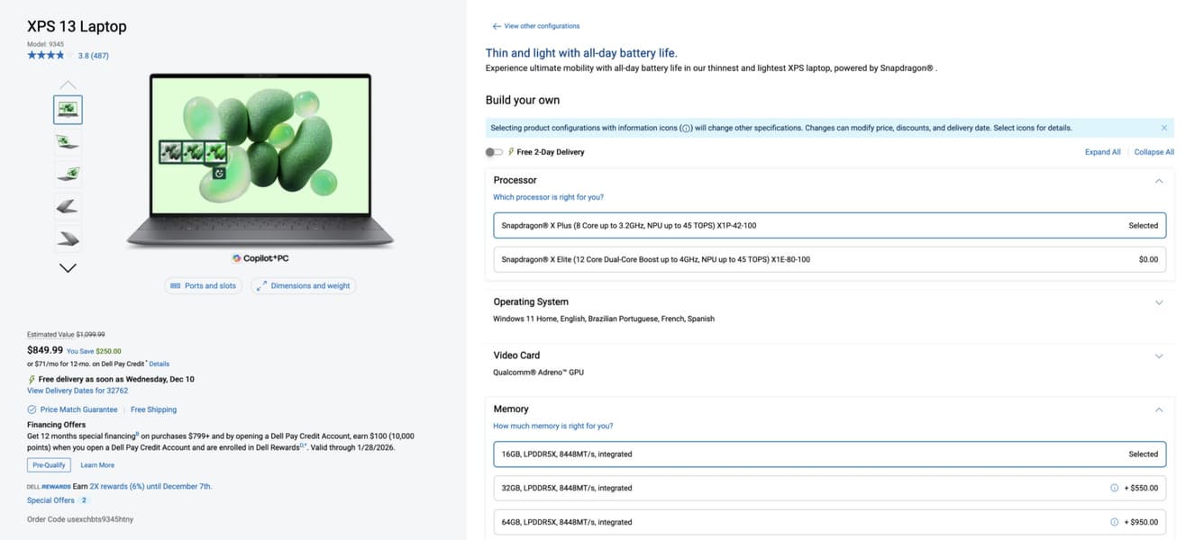 То есть получается, что Dell оценила 16 ГБ ОЗУ в 550 долларов. Для сравнения, в случае нового MacBook на M4 переход от 16 к 32 ГБ обойдётся в 400 долларов, и раньше Apple всегда брала за память больше всех на рынке.