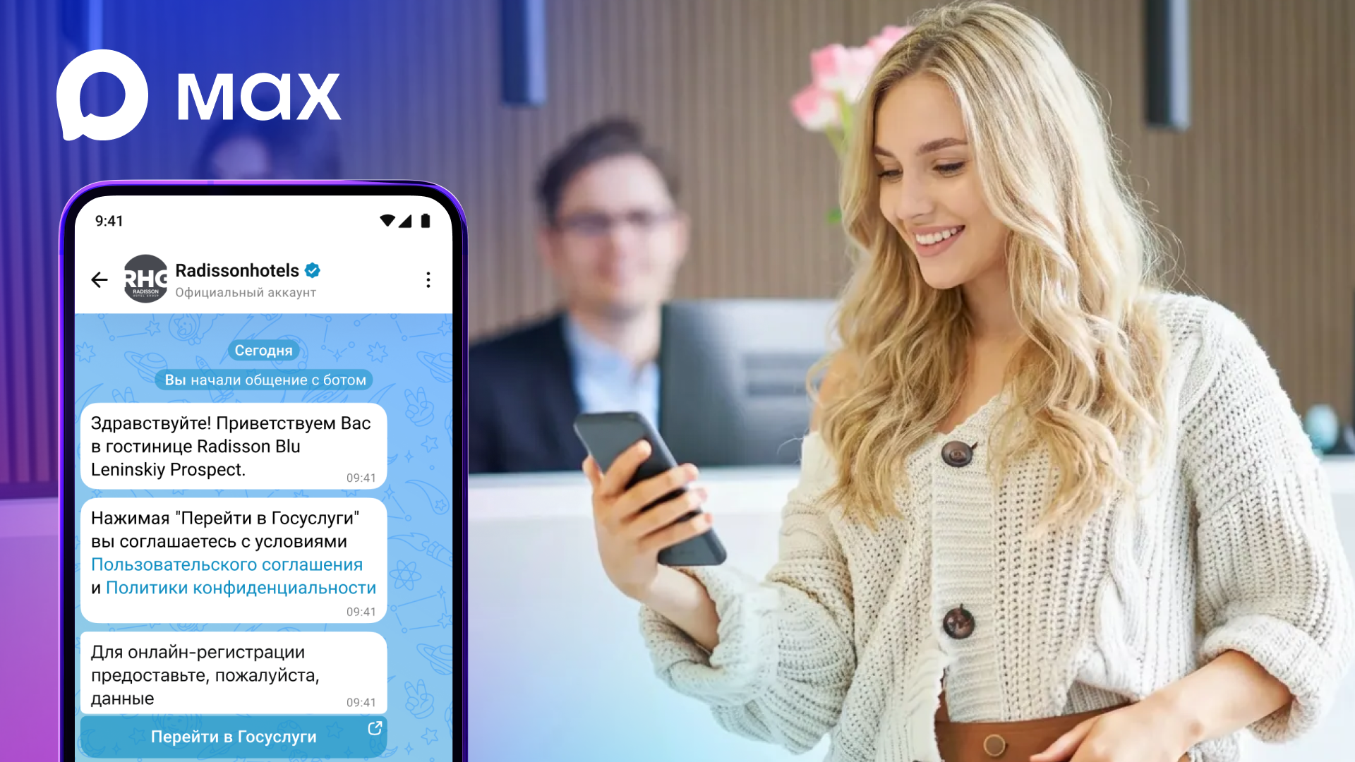 Международная гостиничная сеть Radisson Hotel Group начала тестировать в мессенджере Max сервис онлайн-регистрации. На данный момент сервис доступен в московском отеле Radisson Blu на Ленинском проспекте, но в дальнейшем планируется запустить его во всей сети.