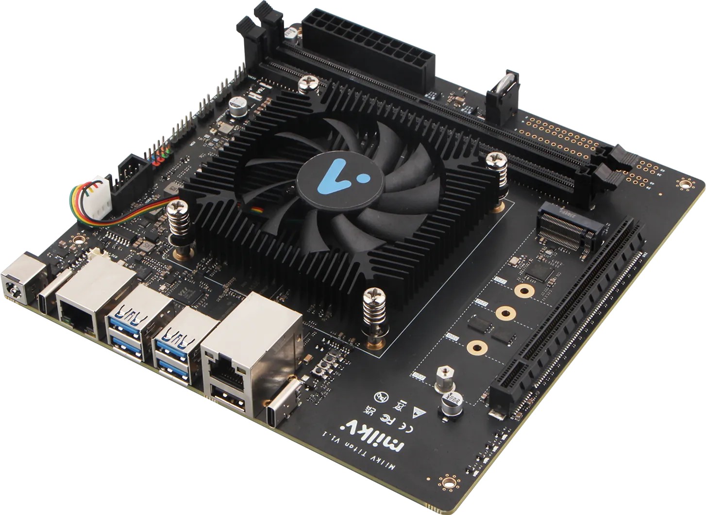 Компания Milk-V выпустила системную плату Titan формата Mini-ITX, которая основана на процессоре с архитектурой RISC-V. Если точнее, в основе тут лежит Ultra-RISC UR-DP1000. Это восьмиядерный чип с четырьмя двухъядерными кластерами, каждый из которых имеет 4 МБ кеша L3.
