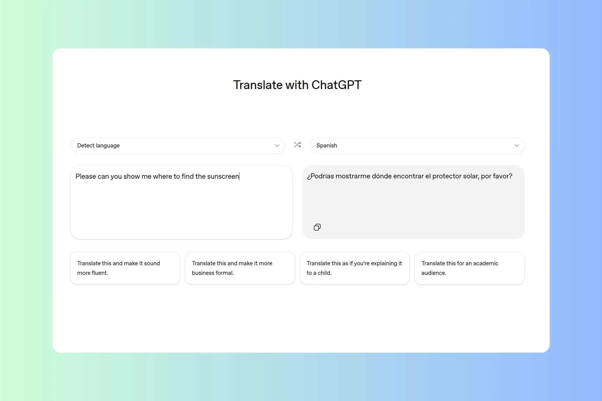 Компания OpenAI запустила новый инструмент для перевода ChatGPT Translate, который может стать прямым конкурентом Google Translate. Новый сервис поддерживает более 50 языков, включая русский, и предлагает пользователям возможность управлять стилем перевода, например, делая его более формальным или академическим.