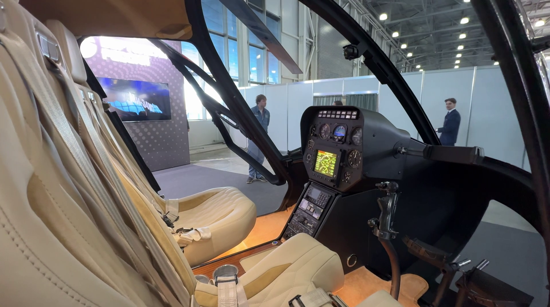 На выставке NAIS в московском «Крокусе» состоялась премьера нового российского вертолета Ми-34М1. Сейчас Ростех показал салон новинки.