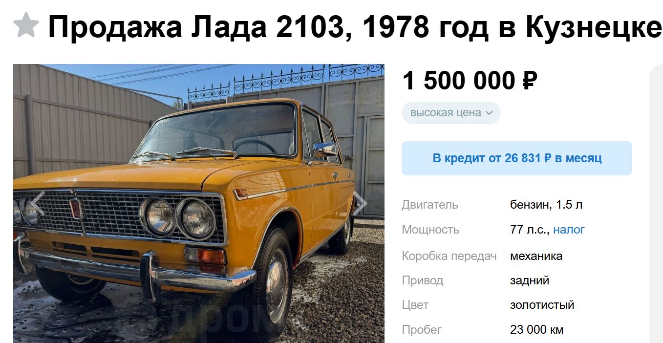 В Пензенской области на продажу выставлен редкий экземпляр отечественного автопрома — ВАЗ-2103 1978 года выпуска. Как сообщает «Российская газета», автомобиль находится в идеальном состоянии и позиционируется владельцем как настоящая «капсула времени». Пробег машины за 46 лет составил всего 23 тысячи километров.