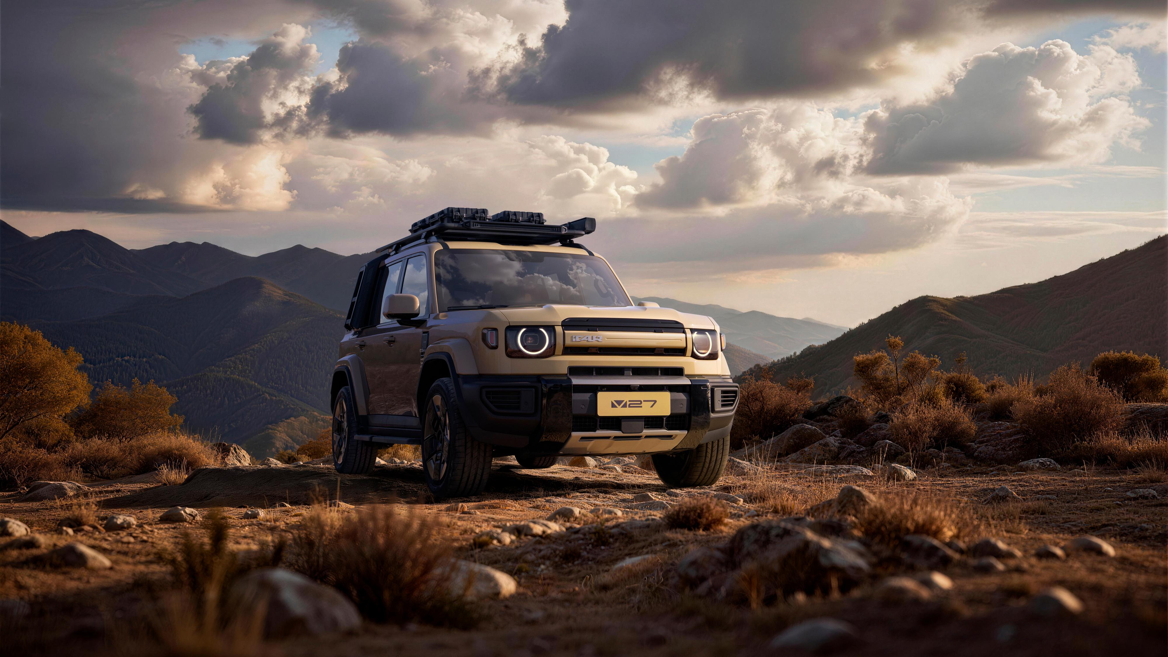 V27 для России отличается узнаваемым брутальным дизайном и гибридной установкой, обеспечивающей запас хода более 800 км. Система теплового управления 1+1+3 объединяет два основных источника мощности — бензиновый двигатель и генератор — с тремя электрическими подсистемами: высоковольтным аккумулятором, электродвигателями и силовой электроникой, обеспечивая быстрый прогрев батареи и салона, продлевая ресурс аккумулятора. Для российских дорог усилено шасси и увеличен дорожный просвет.