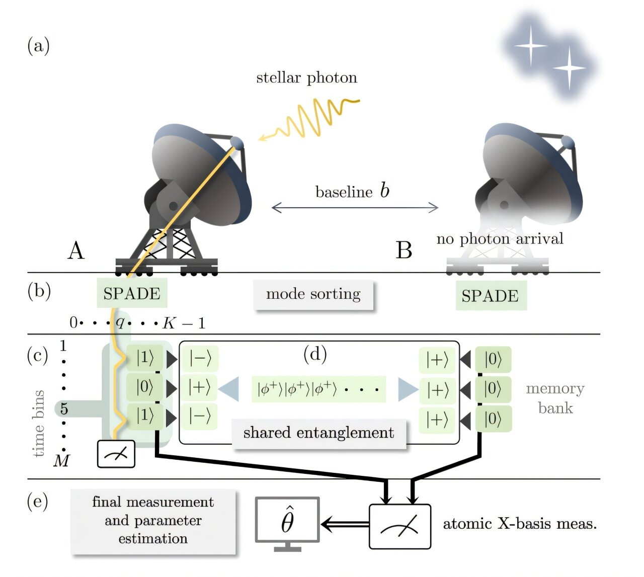 Учёные из University of Arizona, University of Maryland и NASA Goddard Space Flight Center предложили принципиально новый подход: объединять данные телескопов с помощью квантовой запутанности. Вместо физического соединения световых потоков, телескопы обмениваются информацией через квантовые каналы и классическую связь, используя пространственное разделение мод (spatial mode sorting).