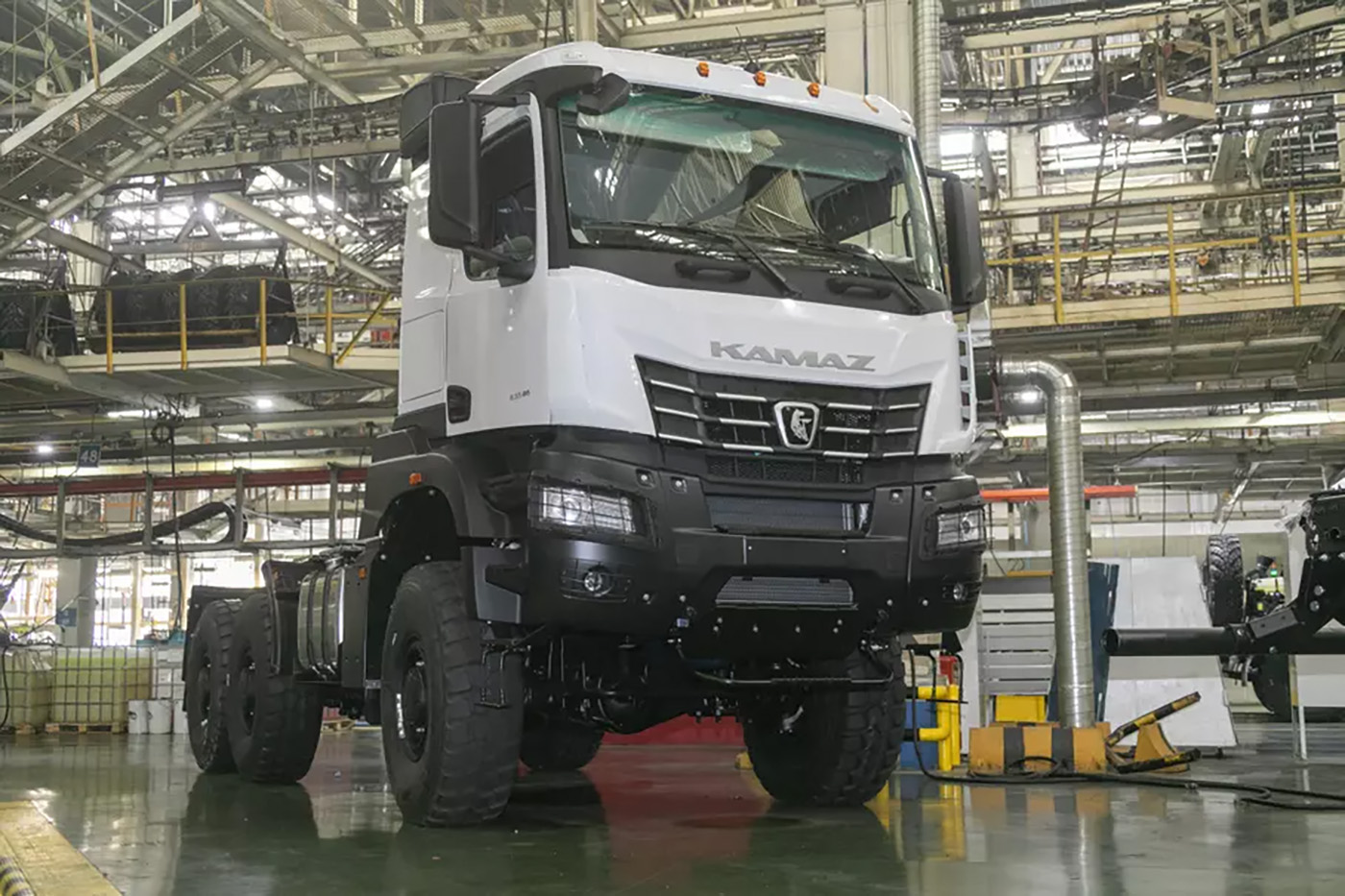 Уже в базовой комплектации машины предусмотрен кондиционер, мощная «печка-автономка» и предпусковой подогреватель двигателя. Также в перечне опций мультимедийная система с сенсорным экраном и навигацией, холодильник. За доплату можно получить дополнительные топливные баки и возможность установки коробки отбора мощности.