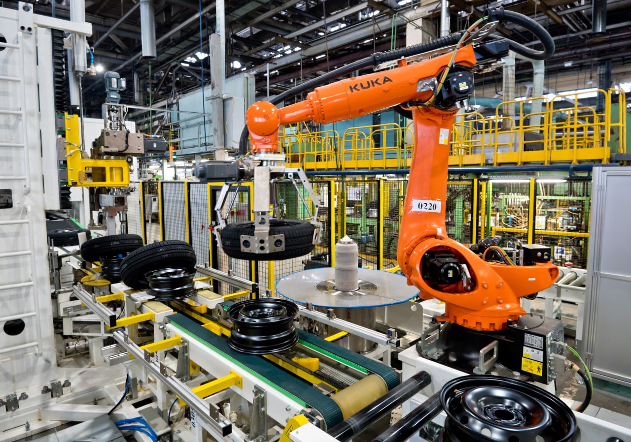 Система использует машинное зрение: роботы автоматически распознают тип шины и диска, если компоненты не соответствуют друг другу, система мгновенно блокирует сборку, исключая брак. Нанесение смазки и сборка производятся роботами пятого поколения, что исключает риск повреждения дисков. Каждое колесо проверяется дважды: любое отклонение от нормы приводит к автоматическому выводу детали с линии без вмешательства оператора.