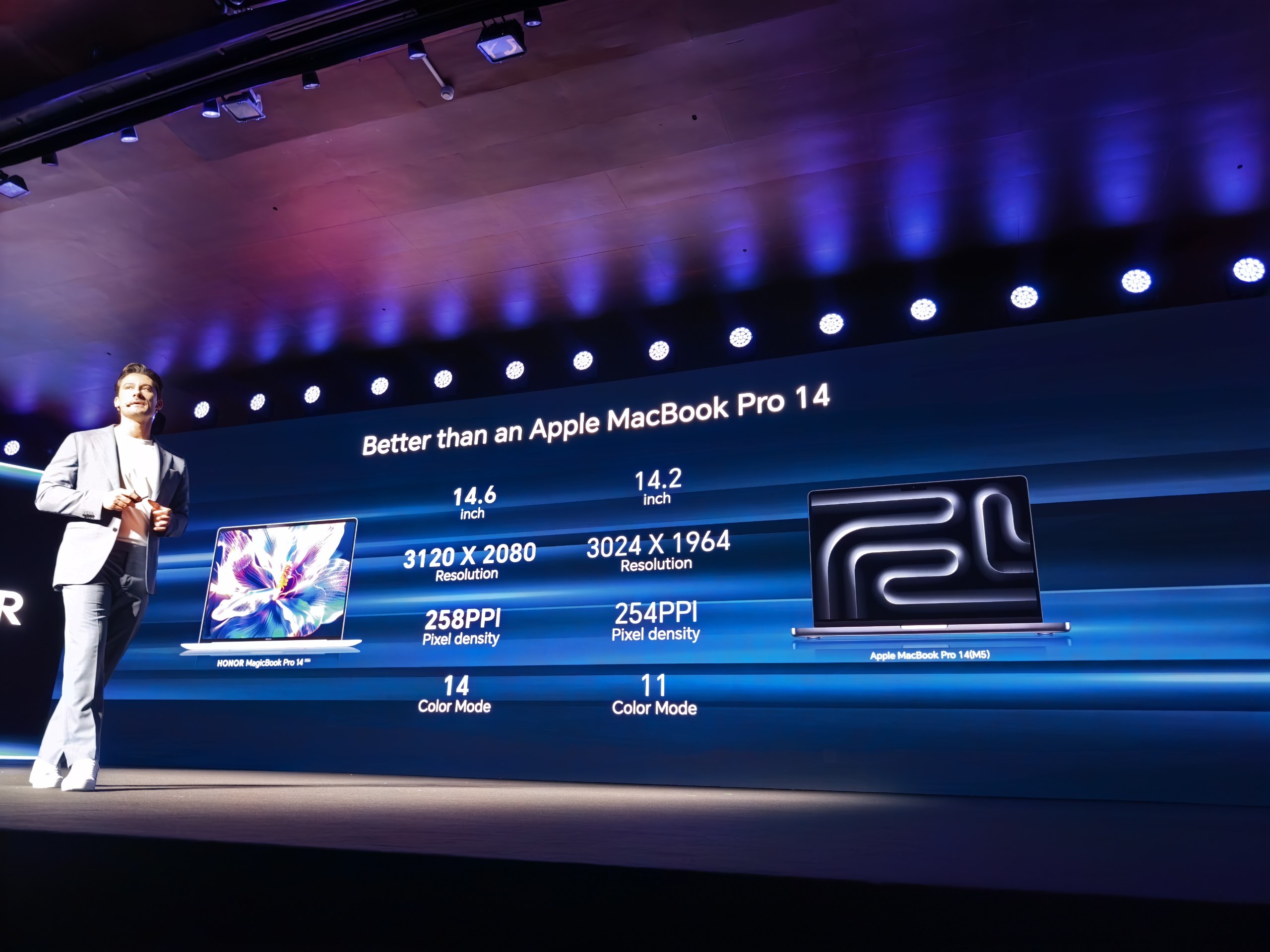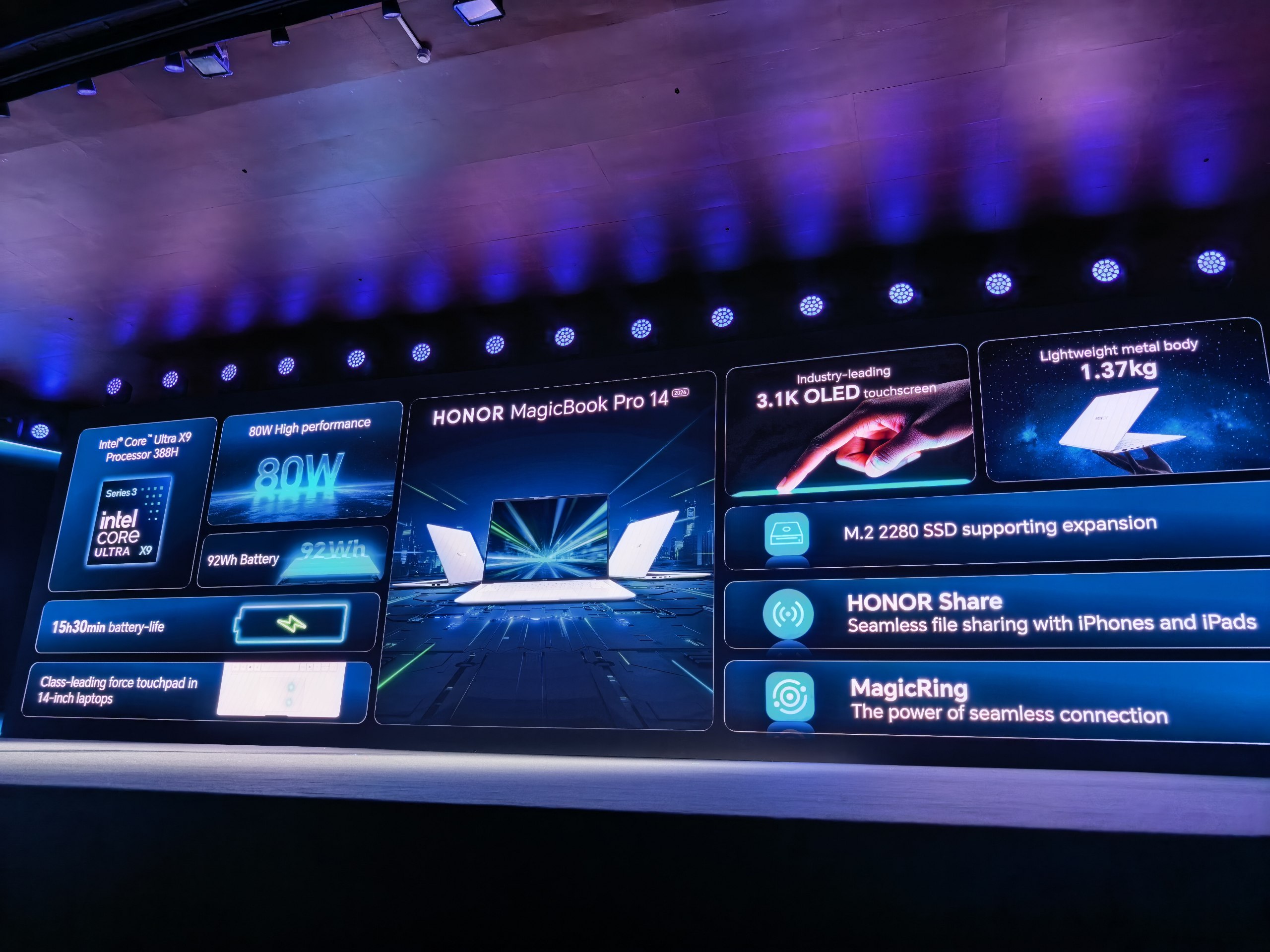 Honor MagicBook Pro 14 построен на новейшей платформе Intel и использует CPU Intel Core Ultra Series 3 (Panther Lake). Экран OLED — с диагональю 14,6 дюйма. Емкость аккумулятора составляет 92 Вт·ч.