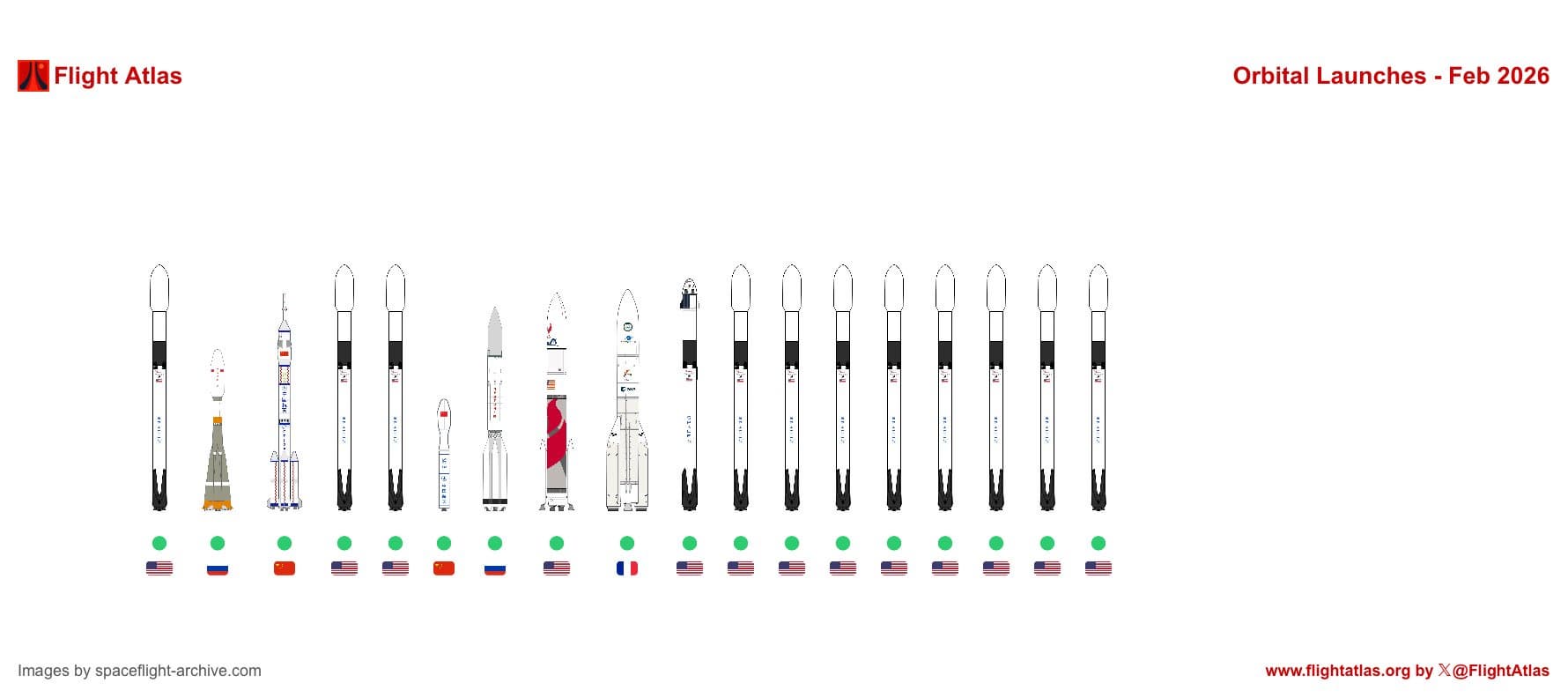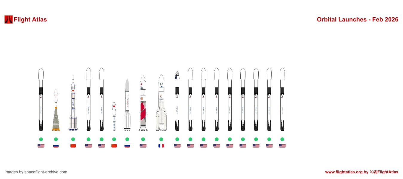 В феврале компания SpaceX выполнила 12 орбитальных запусков ракет — это вдвое больше, чем суммарный показатель всех других стран и операторов вместе взятых, которые за тот же период осуществили лишь шесть стартов.