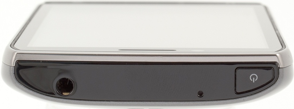 На верхней грани находится разъем для наушников (3,5 мм), небольшое отверстие (видимо, микрофон) и кнопка включения/перехода в спящий режим.