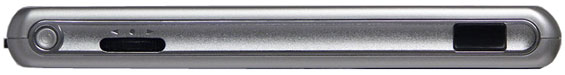 На верхней грани находятся: разъем наушников (джек 2.5" прямо наваждение какое-то, или мы наблюдаем становление очередного стандарта), SDio-интерфейс, гнездо для пера и отверстие микрофона. Последнее привычнее было бы видеть на нижней грани, но нестандартно расположенный динамик мешал бы работе диктофона.