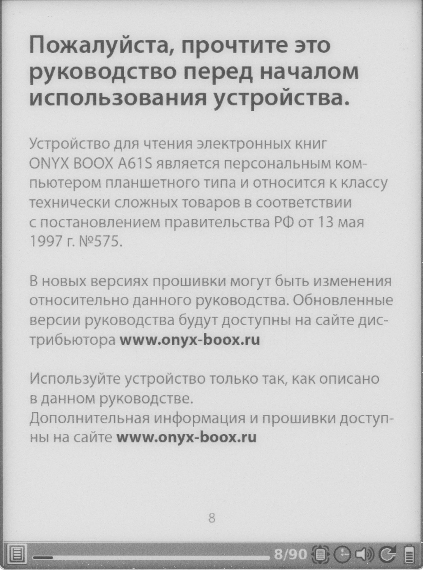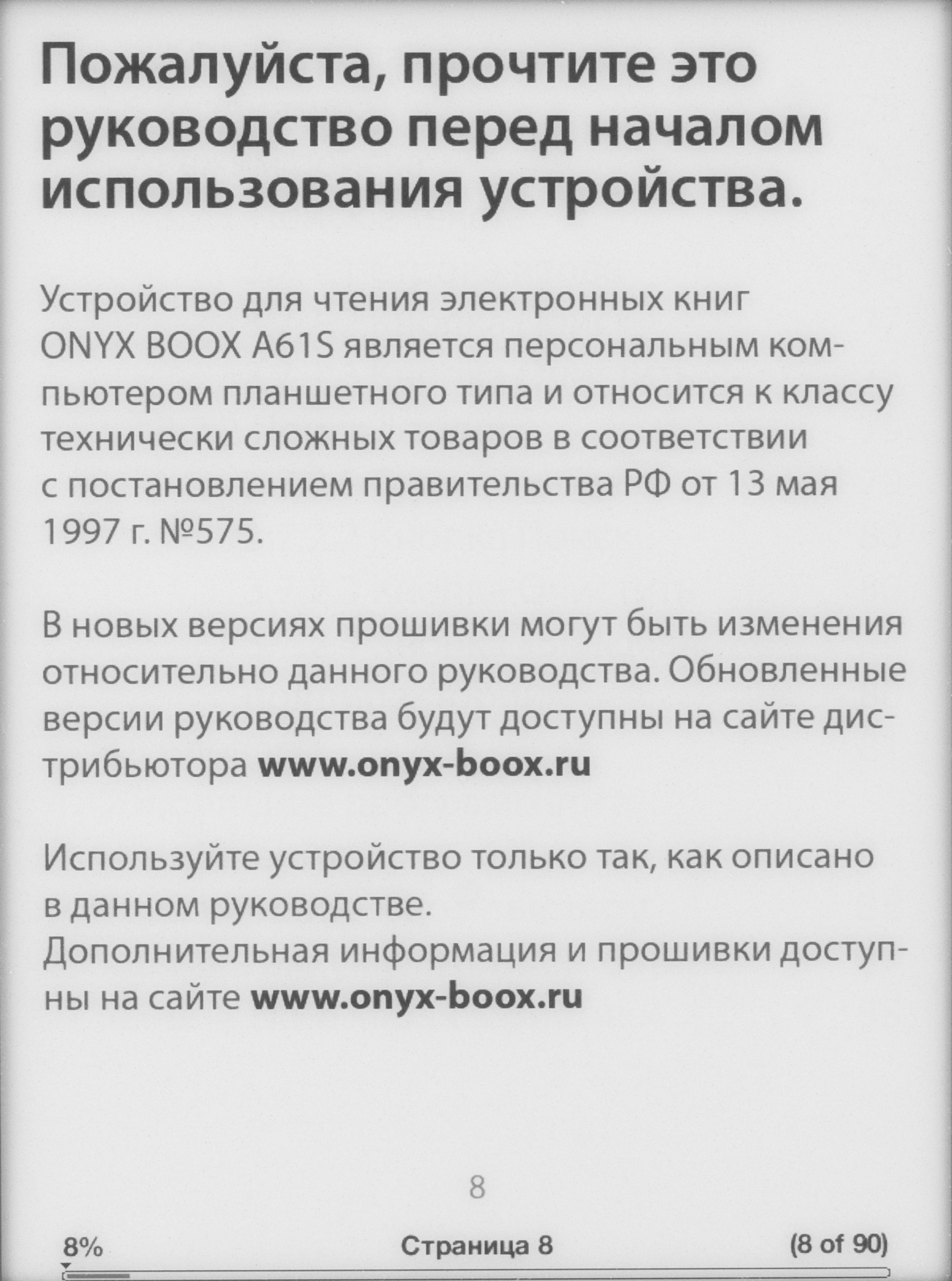 Итак, что же мы видим в книге Onyx A61S. Она поддерживаем огромное количество всевозможных типов файлов — это PDF, EPUB, TXT, TXT.ZIP, HTML, RTF, RTF.ZIP, FB2, FB2.ZIP, DOC, DOCX, DjVu, CHM, XLS, XLSX, MOBI (Non-DRM), PPT, PPTX, PDB. Другими словами, практически любой файл с текстом, который может встретиться в вашем компьютере, эта книга способна «переварить» без необходимости конвертации, отсылки куда-либо и т. п.