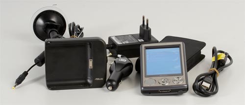 Отсутствие традиционного кредла и наличие автомобильных аксессуаров смотрится необычно. Подключить КПК к компьютеру получится только с помощью идущего в комплекте USB–кабеля, в спецразъем придется подключать также зарядное устройство.