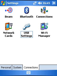 В Аsus A636 реализовано три варианта работы КПК при его подключении по USB кабелю. В первом режиме КПК начинает автоматическую синхронизацию с настольным ПК, ничего необычного не происходит. Во втором режиме устройство распознается как USB накопитель, в третьем как аналог кард-ридера для флэш карт. Переключение между различными вариантами работы КПК производится в системных настройках.
