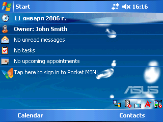 Отдельно стоит отметить появившуюся в WM 5.0 возможность работы с КПК в ландшафтном режиме. Для управления данной функцией на экран Today вынесена иконка утилиты поворота экрана. Одним кликом пера пользователь может переключаться между двумя режимами работы дисплея. Проблем в работе программ в обоих режимах не было замечено, единственный недостаток – поворот экрана возможен только на 90 градусов по часовой стрелке и обратно.