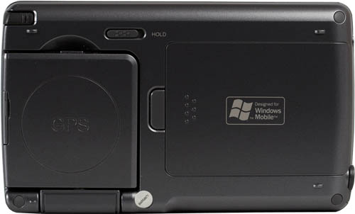 Сорок процентов площади задней панели наладонника занимает антенна GPS, остальное пространство почти полностью отведено под аккумуляторный отсек. Из элементов управления место нашлось только для копки Hold. При её использовании блокируются все клавиши управления, отключается экран, но программы продолжают выполняться.