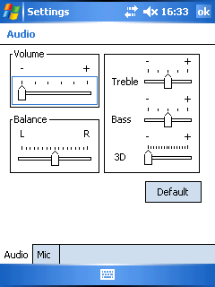 Тестирование звуковой подсистемы КПК проводилось при помощи компьютера с установленной звуковой платой Terratec DMX 6fire и программой RightMark Audio Analyzer версии 5.5. Выход для наушников наладонника соединялся с линейным входом звуковой карты компьютера. Громкость звучания выставлена на максимум, а параметры treble/bass на минимум.