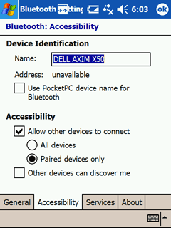 Функциональность Bluetooth реализуется посредством стека Broadcom (WIDCOMM). В отличие от конкурентов, у Dell Axim X50v доступен профиль Wireless headset, что делает возможным совместную работу КПК и Bluetooth-гарнитуры. При этом допускается использование устройства как IP-телефона через Wi-FI.