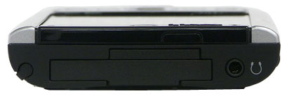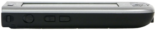 На левой грани размещены: двухпозиционный переключатель блокировки ввода и две дополнительные кнопки. Последние по умолчанию отвечают за включение Wi-FI и вызов диктофона. Первый в положении «заблокировано» заставляет КПК игнорировать любые нажатия на кнопки быстрого запуска, джойстика или щелчки по сенсорному экрану. Полезность этого элемента управления проще всего оценить, пользуясь комплектным чехлом, конструкция которого такова, что при вынимании устройства палец обязательно задевает за кнопку включения беспроводной сети. В качестве модного дополнения на левом торце имеется крепление «шнурка» для ношения КПК на запястье (или шее, если двести грамм веса и солидные размеры не будут смущать владельца и окружающих).