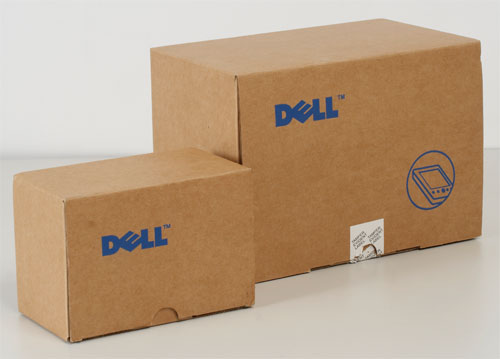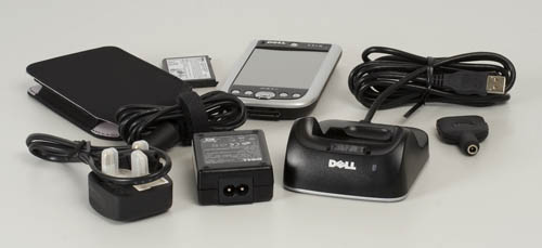Знакомые по предыдущим КПК от Dell невзрачные картонные коробочки. Только прочитав стикер с описанием, становится возможным узнать, что именно вы держите в руках. Компьютер, аккумулятор, адаптер для подзарядки без кредла и чехол были извлечены из первой коробки. В маленькой коробочке расположилось зарядное устройство с кабелем и кредл. При покупке постарайтесь не перепутать разные модели компьютеров.