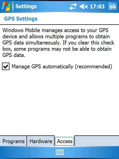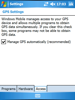 В системных настройках, помимо стандартных и знакомых еще по WM2003, присутствуют несколько новых опций. Появился апплет для работы с модулем спутниковой навигации — GPS. У Axim X51v он внешний и приобретается отдельно. В будущем программы, использующие GPS-модуль, должны обращаться к новым функциям операционной системы, а не к последовательному порту, как это происходит сейчас. Для управления доступом к данным разными приложениями будет использоваться этот апплет.