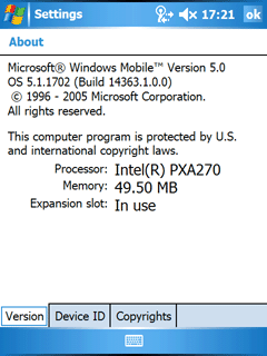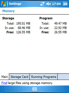 - 64МБ оперативной RAM памяти. Регулированием использования свободного объема памяти занимается операционная система. Связано это с новым подходом к работе с памятью в Windows Mobile 5.0