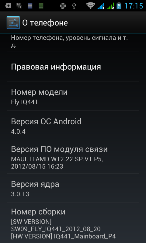 Коммуникатор работает под управлением операционной системы Android 4.0.4 Ice Cream Sandwich, какой-либо оболочки, меняющей внешний вид ОС, нет. В принципе, на этом описание программной начинки Fly IQ441 можно было бы закончить, если бы не два «но»: во-первых, разработчики коммуникатора снабдили его большим количеством стороннего программного обеспечения, а во-вторых, свой отпечаток на некоторые аспекты работы системы наложил факт поддержки двух SIM-карт.