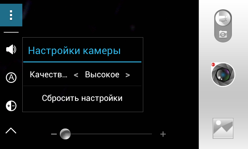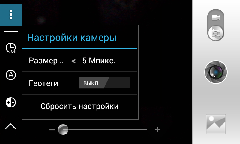 Запустить программу съемки фото и видео у Fly IQ441 очень просто — достаточно провести пальцем влево на экране разблокировки коммуникатора. Камера стартует за секунду, еще одна секунда требуется на срабатывание системы фокусировки и получение снимка.