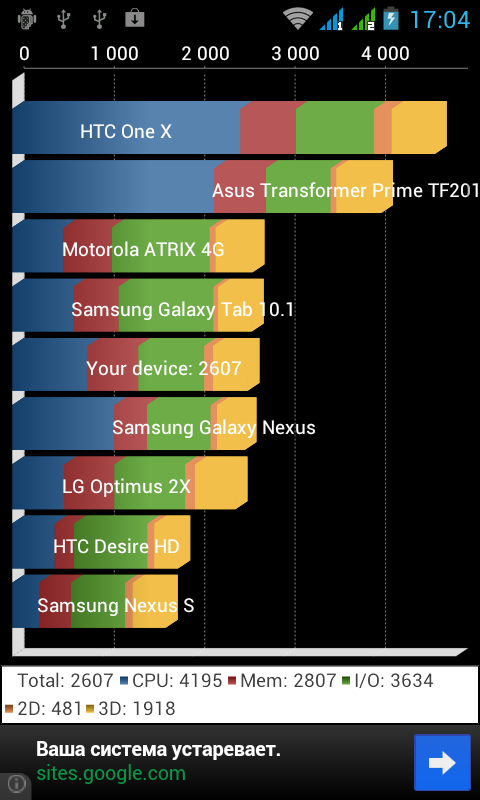 Результаты тестов в AnTuTu Benchmark 2.8:
