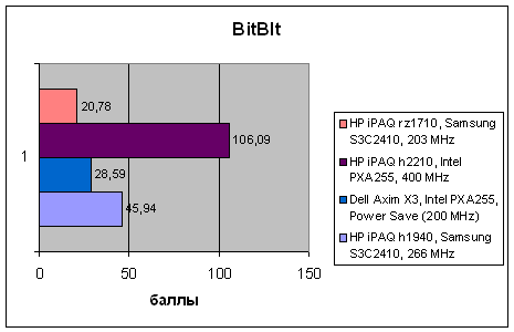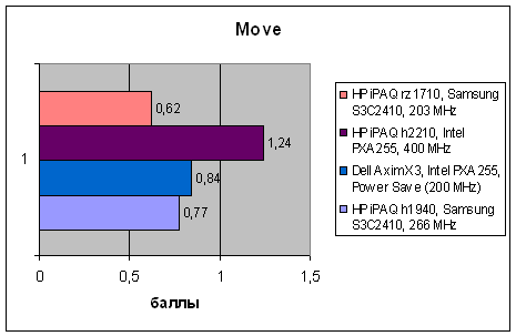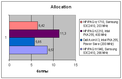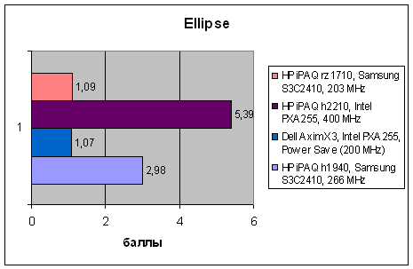 Результаты тестов производительности мы решили представить в сравнении со следующими моделями – HP iPAQ h1940 (представитель предыдущего поколения бюджетных iPAQ, оснащавшихся 266-мегагерцевыми чипами Samsung ), Dell Axim X3 в режиме 200 MHz (для сравнения с другими бюджетными КПК с 200-мегагерцевыми чипами Intel XScale) и HP iPAQ h2210 (для сравнения с 400-мегарерцевыми чипами XScale, также понемногу переходящими в бюджетный сегмент).