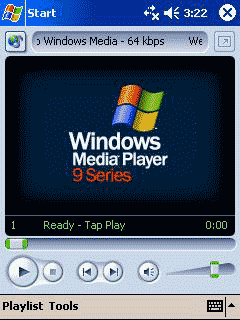 В Windows Mobile 2003 появилась новая версия универсального проигрывателя  Windows Media Player 9. Он отличается в первую очередь поддержкой новой версии формата кодирования аудио и видео  Windows Media v9. Другим видимым для пользователя усовершенствованием является возможность отображения видео в полноэкранном режиме с поворотом на 90 градусов (в ландшафтной ориентации), что делает просмотр роликов более удобным. Как и прежде, поддерживаются аудиоформаты MP3 и WMA, и видео  WMV. К сожалению, отсутствует поддержка MPEG-1 и MPEG-4, для проигрывания этих форматов придется пользоваться соответствующими программами-плеерами. К слову, Pocket DivX;) версии 0.8 (самый «свежий», доступный пока для загрузки) работал на h1940 не совсем корректно  звук воспроизводился со значительной потерей качества и перебоями. По всей видимости, полноценную поддержку MPEG-4 на платформу Windows Mobile 2003 принесет только новый релиз этого проигрывателя (который, к слову, не обновлялся уже больше года).