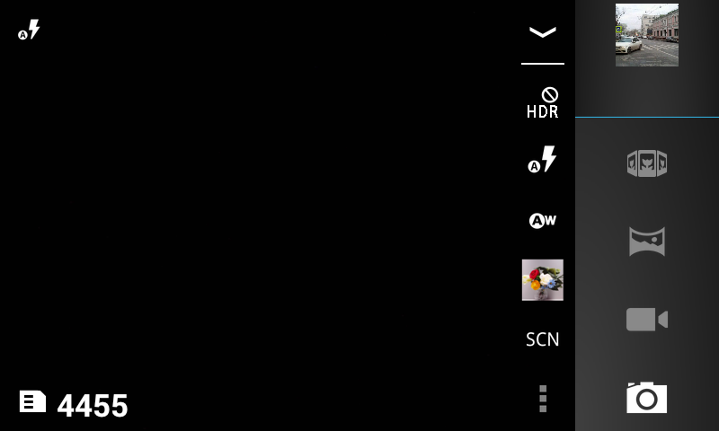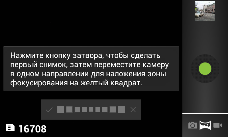 К возможностям камеры, помимо съемки обычных фотографий, относятся получение HDR-снимков и панорам двух типов: макро и обычной. В первом случае программа сама распознаёт движение камеры и считывает кадры непрерывно, во втором — только последовательно после точного совпадения границ нового кадра и предыдущего. Не промахнуться помогают рамки двух цветов: одна демонстрирует зону захвата текущего кадра, другая — предыдущего. В итоге панорамы снимать очень удобно.