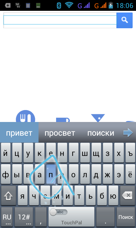 В Philips W732 установлена, но не выбрана по умолчанию популярная сторонняя виртуальная клавиатура — TouchPal. Возможностей у нее предостаточно: это и предсказание ввода по списку слов, и распознавание движения пальца по клавишам, и телефонный вариант раскладки, и отдельный экран с функциями редактирования текста, выделения и управления перемещением курсора.