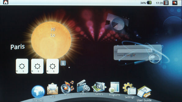 Внизу рабочего стола располагается восемь иконок самых популярных приложений: Internet, Mail, Music, Video, Gallery, Programs, Settings, User Guide. Изменить этот список невозможно, а потому, частенько приходится пользоваться папкой приложений Programs.