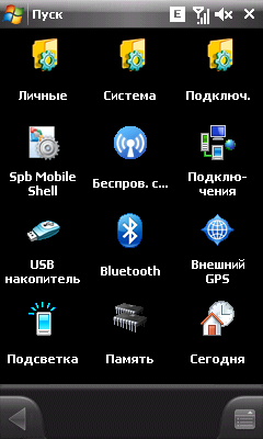 На лицевой стороне коммуникатора, помимо упомянутой узкой центральной клавиши, слева и справа расположены кнопки начала и окончания вызова. Всего три клавиши. Жаль. Были бы не лишними кнопка, отвечающая за закрытие текущего окна, и клавиша вызова меню «Пуск». Но их нет. Конечно, можно прицельно тыкать в соответствующие области сенсорного экрана. Но во многих ситуациях до необходимых пунктов меню хочется добраться очень быстро. А если учесть тряску в общественном транспорте или автомобиле, можно представить, насколько упрощают жизнь крупные аппаратные клавиши.