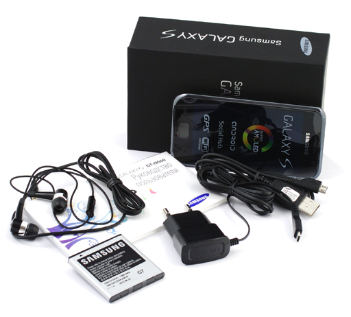 Из коробки были последовательно извлечены: коммуникатор, документация, аккумуляторная батарея, зарядное устройство, гарнитура и USB-кабель. Таким образом, с мобильным компьютером поставляются все необходимые аксессуары. Не хватает лишь диска с программным обеспечением, которое придется скачивать с сайта Samsung. К слову, сама программа Samsung Kies имеет объем более 150 мегабайт, кроме того, для её установки в Windows XP потребуется инсталляция пакета Microsoft .NET Framework, который, в свою очередь, «весит» более 250 мегабайт. В общем, хорошо, что коммуникатором Samsung Galaxy S, в отличие от Apple iPhone, можно успешно пользоваться без установки каких-либо дополнительных программ.