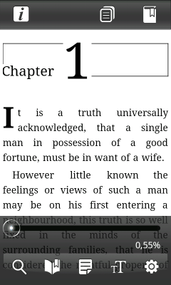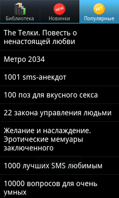 Список дополнительного программного обеспечения открывает читалка Aldiko eBook, аналог приложения iBook для iOS. В целом, функциональность программ схожа, eBook имеет возможность загружать книги, находящиеся в свободном достоянии, с сайта feedbooks.com. Все другие книги придется добавлять в виртуальную библиотеку самостоятельно в формате ePub. Кроме того, книги можно приобрести и загрузить с помощью приложения Книжный магазин (Samsung Book Store).