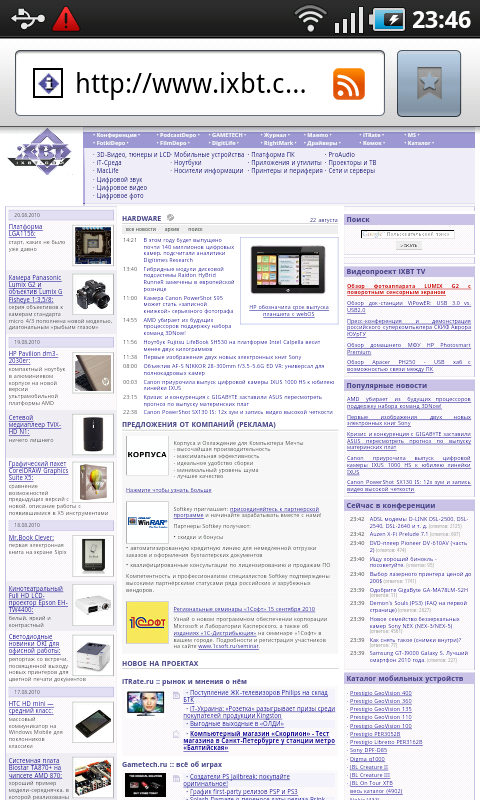Точность срабатывания сенсорного экрана превосходная. Поддерживается мультитач и автоматическая смена ориентации. Яркость подсветки дисплея регулируется автоматически, на основе информации с датчика внешнего освещения. Регулировать её можно также вручную, хотя минимальный и максимальный уровни подсветки отличаются несильно. Как бы то ни было, экран коммуникатора очень яркий изначально, увеличивать мощность подсветки вряд ли потребуется, разве что только в случае сильного внешнего освещения. В ходе работы с коммуникатором выяснилась еще одна особенность управления подсветкой: у дисплея есть срок автоматического отключения, максимум 30 минут, установить большее значение или перевести экран в режим постоянной работы нельзя. Все это сильно затруднило выполнение тестов автономной работы.