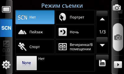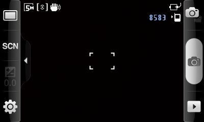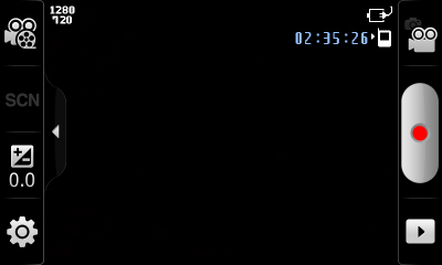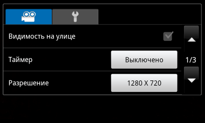 Основной экран программы не отягощен значками и элементами управления. Панели с настройками появляются по его бокам только после щелчка по небольшой стрелке. На них находятся: кнопки смены режима съемки, выдержки, переключения между фото- и видеосъемкой, вызова еще одного окна настроек и открытия фотоальбома.