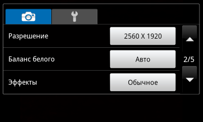 Вызвав второе окно с настройками камеры, можно: изменить режим работы автофокуса, установить таймер, сменить разрешение, баланс белого, эффекты, ISO, подключить стабилизацию изображения, изменить качество изображения, контраст, насыщенность и резкость. При необходимости, каждое изображение может быть сопровождено географическими координатами.